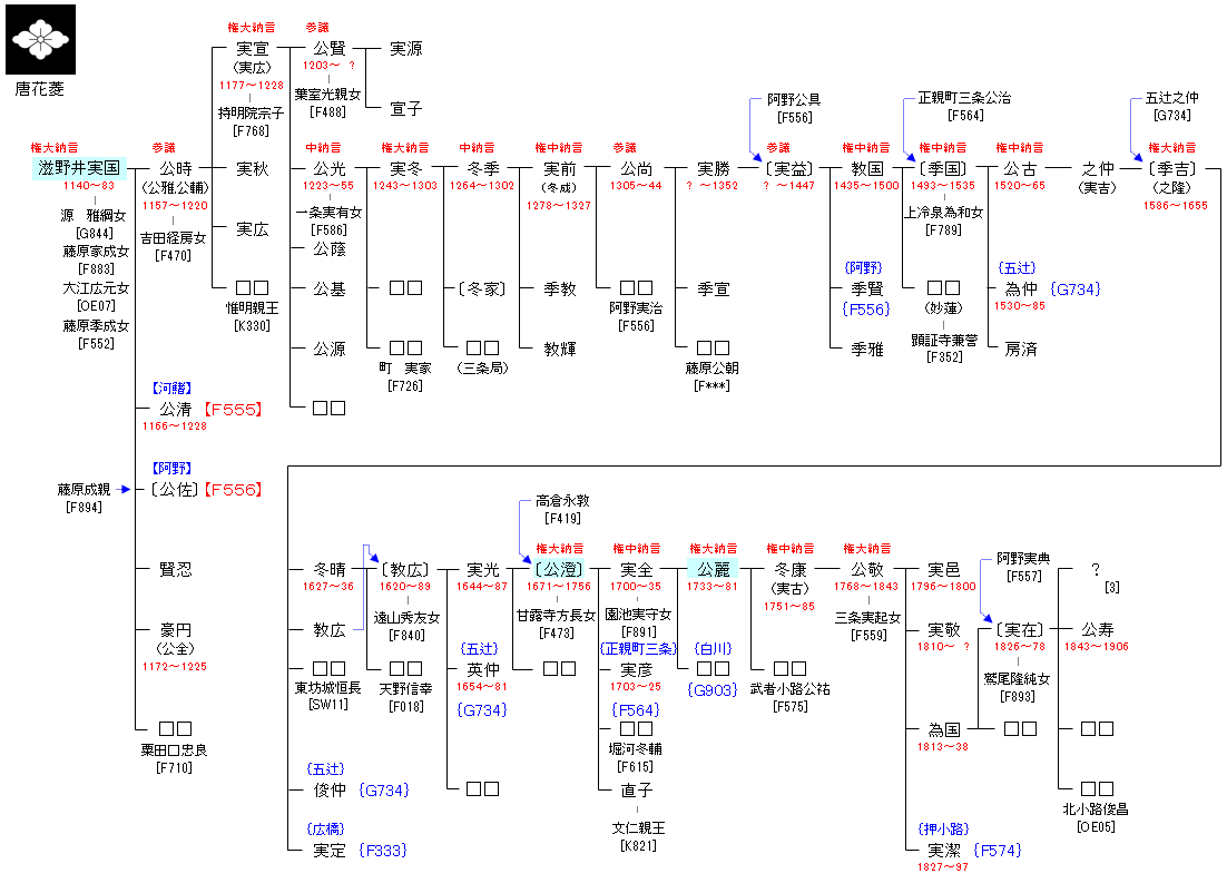 F553:三条実行 | 藤原公季 ― 藤原公実 ― 三条実行 ― 滋野井実国 | F554:滋野井実国 |