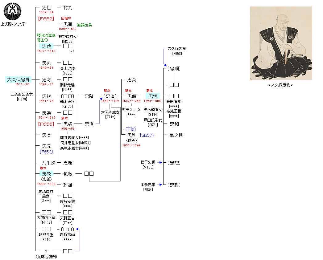 | F650:宇津忠茂 | 藤原道兼 ― 宇都宮宗円 ― 宇都宮泰綱 ― 武茂泰宗 ― 宇津忠茂 ― 大久保忠員 | F651:大久保忠員 |