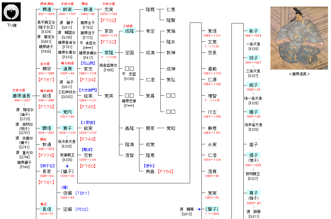 F521:藤原師輔 | 藤原房前 ― 藤原冬嗣 ― 藤原良房 ― 藤原忠平 ― 藤原師輔 ― 藤原道長 | F701:藤原道長 |