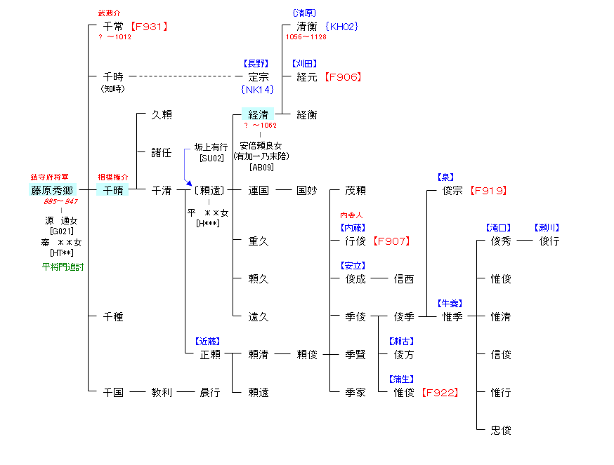 | F801:藤原魚名 | 藤原魚名 ― 藤原秀郷 | F901:藤原秀郷 |
