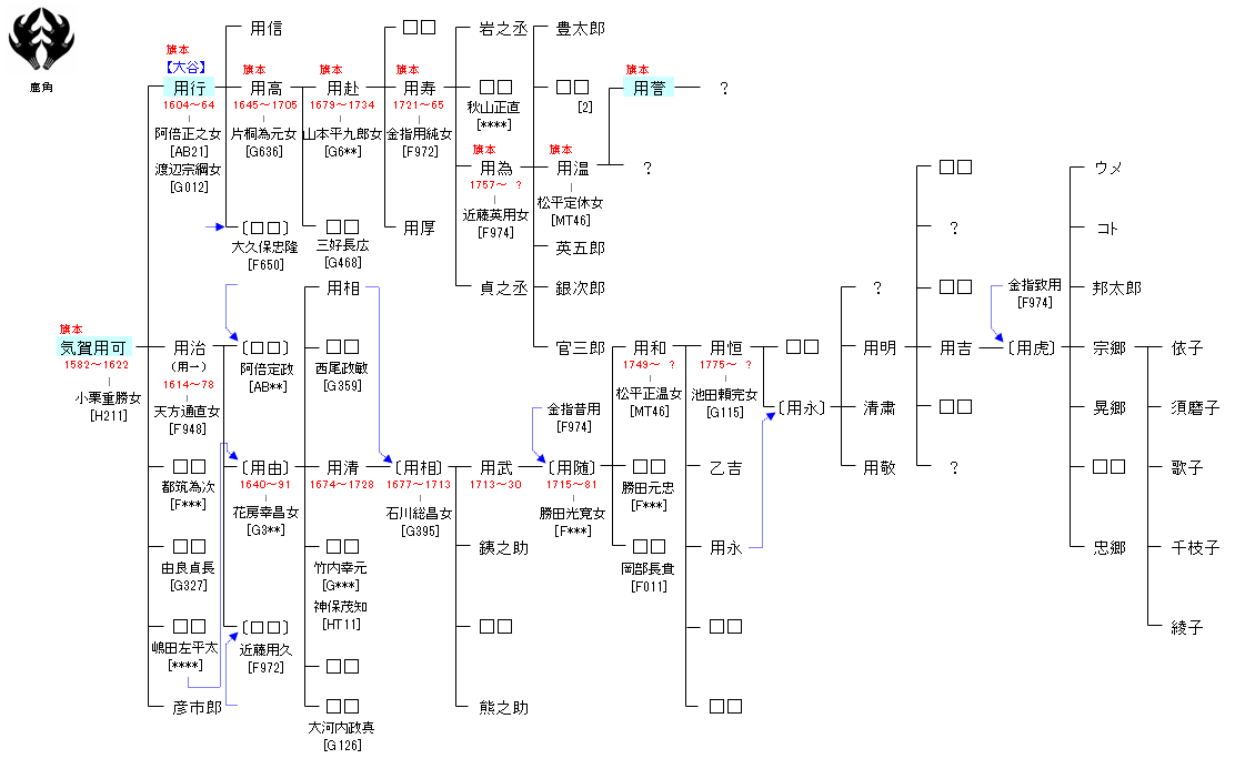 | F972:近藤満用 | 藤原魚名 ― 藤原秀郷 ― 藤原千常 ― 近藤脩行 ― 近藤満用 ― 近藤用可 | F975:近藤用可 | ● |