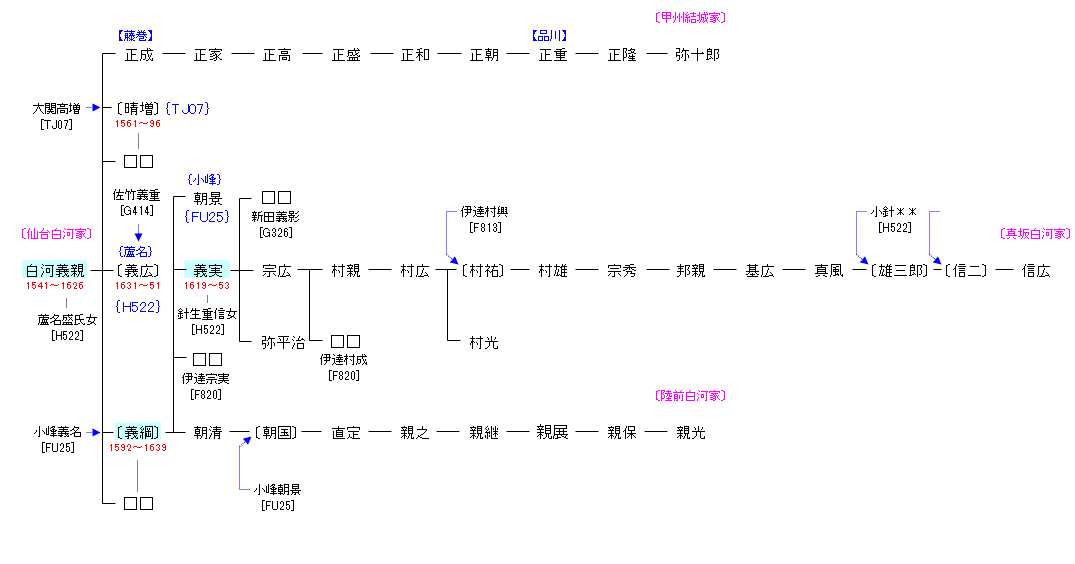 文禄元年(1592年)、白河結城氏一族・小峰義名の子として生まれる。父・義名は早世したため、この時点で跡取りのいなかった伯父・結城義親の婿養子となる(これ以前に大関晴増,佐竹義広が義親の養子となっていたが、共に実家に戻っている)。 義親は天正18年(1590年)の奥州仕置の際に改易されて以来、流浪の身であったが、慶長6年(1601年)に伊達政宗の客分となり百人扶持を給与されると、義綱もこれに従って仙台に移った。 義綱は寛永3年(1626年)に義親が死去する以前に既に家督を譲られていたと考えられる。義綱の代以降もっぱら白河氏を名乗るようになったが、義綱の代までは客分扱いのままであり、正式に仙台藩の家中に組み込まれるのは子の義実の代からである(当初の家格は一族。孫の宗広の代で一門に昇格)。 寛永16年(1639年)9月6日死去。享年48。嫡男・義実が家督を相続した。
