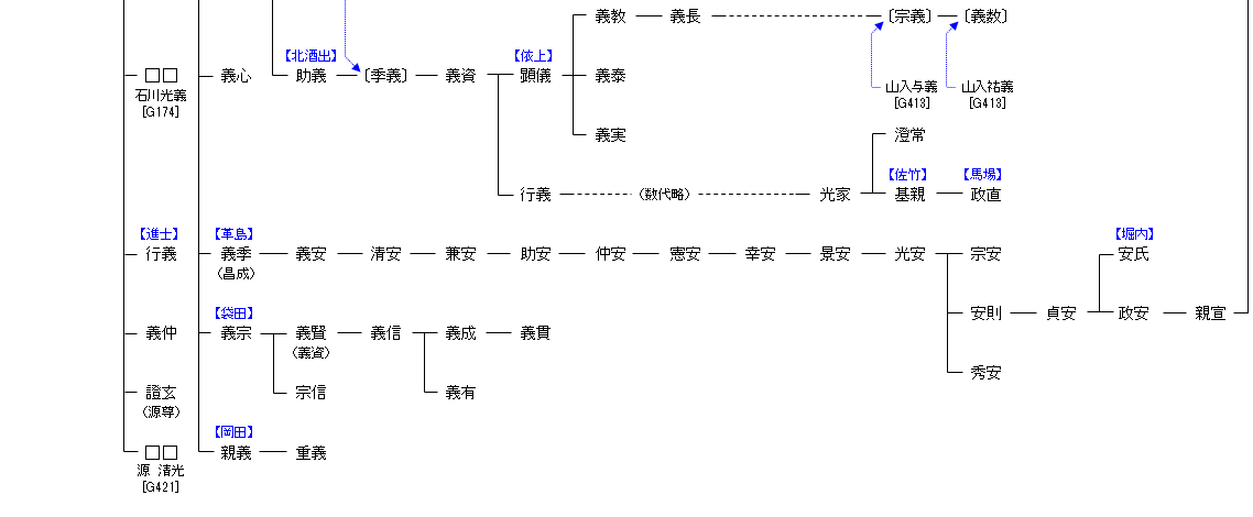 | G411:源 義光 | 源 経基 ― 源 頼信 ― 源 義光 ― 佐竹義業 | G412:佐竹義業 |