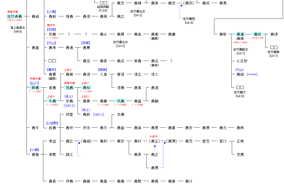 | G412:佐竹義業 | 源 経基 ― 源 頼信 ― 源 義光 ― 佐竹義業佐竹貞義 | G413:佐竹貞義 |