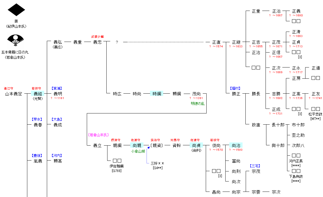 | G412:佐竹義業 | 源 経基 ― 源 頼信 ― 源 義光 ― 佐竹義業 ― 山本義定 | G418:山本義定 | ● |
