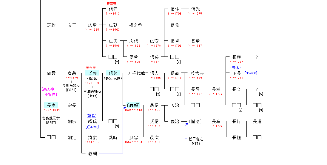 | G453:小笠原政康 | 源 義清 ― 小笠原長清 ― 小笠原長忠 ― 小笠原政康 ― 小笠原貞朝 | G454:小笠原貞朝 |