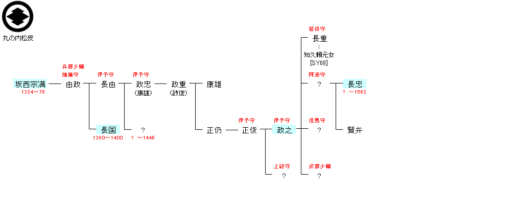 G452:小笠原長忠 | 源 義清 ― 小笠原長清 ― 小笠原長忠 ― 坂西宗満 | G461:坂西宗満 | ● |