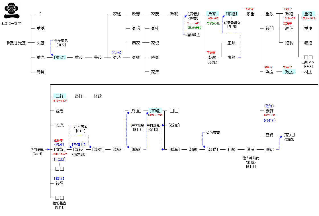 | H472:平 胤宗 | 平 高望 ― 平 忠常 ― 平 胤宗 ― 多賀谷光基 | H474:多賀谷光基 | ● |
