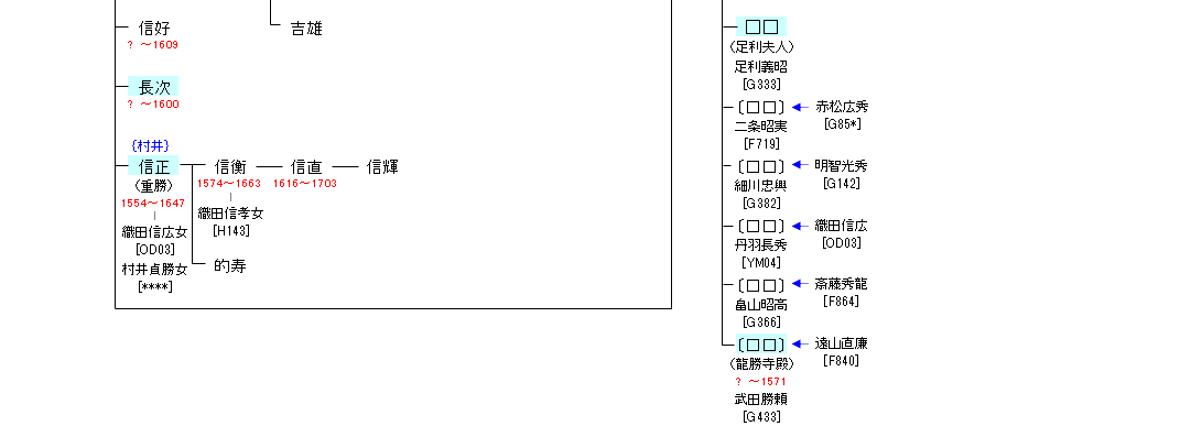 | 織田長次 | 織田信正(村井重勝) |