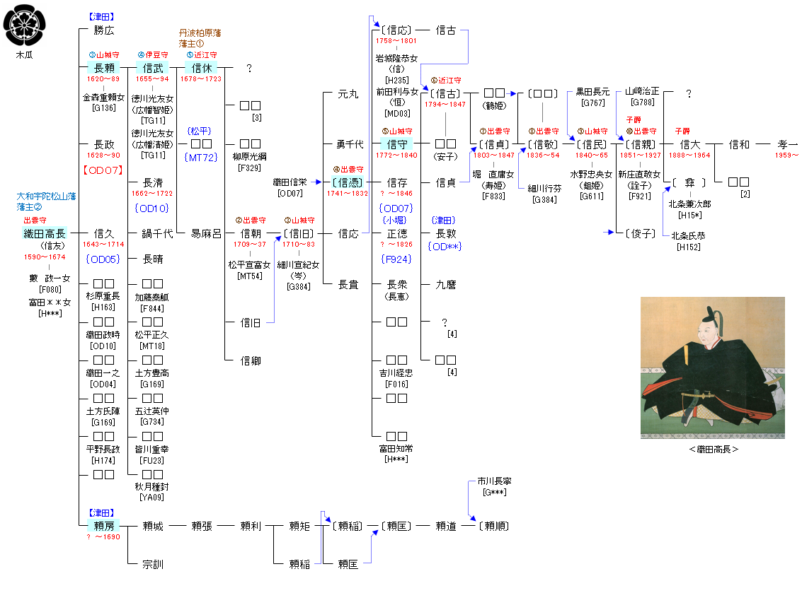 | OD05:織田信雄 | 織田親真 ― 織田敏定 ― 織田信秀 ― 織田信長 ― 織田信雄 ― 織田高長 | OD06:織田高長 |