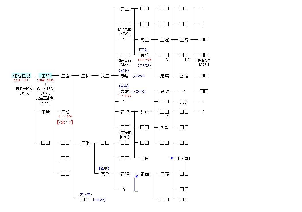 OD03:織田信秀  織田親真 ― 織田敏定 ― 織田信秀 ― 柘植正俊 OD12:柘植正俊