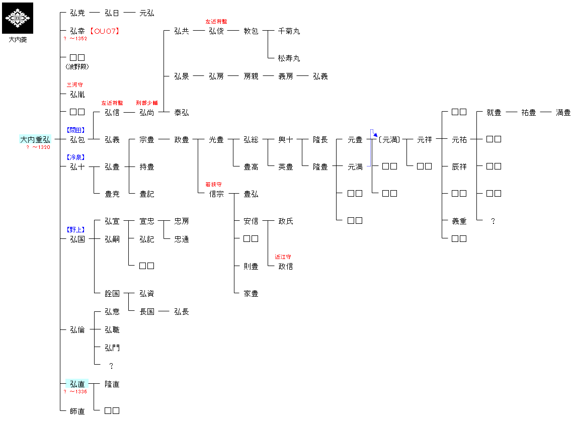 大内氏の第22代当主。正安2年(1300年)の父の死で家督を相続した。『大内氏系図』には重弘は六波羅探題の評定衆を務めていたと記されている。 重弘が家督を継いだ13世紀末より、東大寺大勧進職の利権化に伴って、東大寺衆徒による周防国衙領支配への介入と暴力化が問題化し、これに在庁官人が対抗する構図が生まれる。重弘も当然それに巻き込まれていく。 正和元年(1312年)以降の大勧進職・国司上人であった心源及び目代として派遣された承元が在庁官人と全面衝突する。心源,承元は国衙領内の在庁官人や他の寺社領を全て収公して国衙領に加える方針であったとみられるが、在庁官人側は反対に東大寺の末寺である阿弥陀寺の所領も含まれていることに着目して大勧進職が同寺の廃絶を企てていると訴えたのである。重弘は六波羅探題での地位を利用して幕府や朝廷に働きかけただけでなく、実玄を中心とする衆徒に賄賂に送って味方につけ、心源排除の強訴を行わせた。心源側の衆徒も実玄の配流を求める強訴を起こしたものの在京していた重弘の働きで失敗に終わり、代わりに一旦収公した阿弥陀寺の寺領を再寄進して事態の収拾を図った。だが、重弘以下在庁官人の抵抗は続き、文保2年(1318年)末までに心源を罷免に追い込んだ。 元応2年(1320年)3月6日に死去。跡を嫡男の弘幸が継いだ。