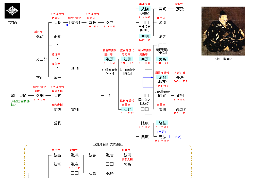 | OU10:右田盛長 | 多々良正恒 ― 右田盛長 ― 陶 弘賢 | OU11:陶 弘賢 |