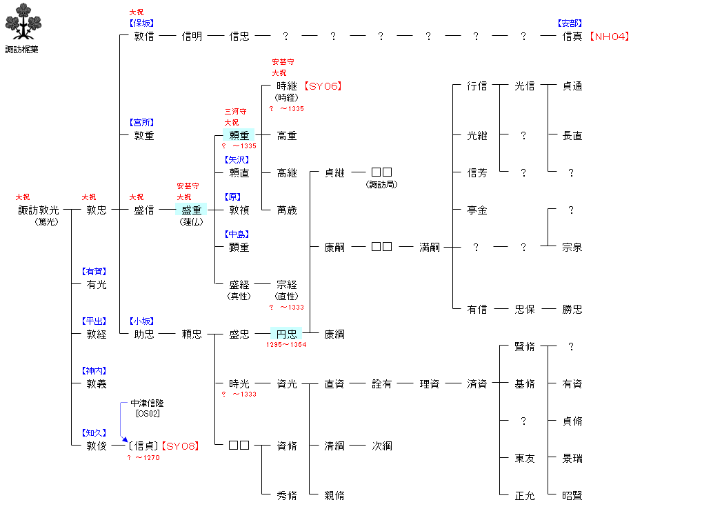 諏訪大社の大祝とされるが不詳。父親については諸説ある。鎌倉時代において、諏訪氏は代々信濃守護の北条氏の御内人であった。東勝寺においては諏訪一門の諏訪時光(円光入道)が自刃している。 鎌倉幕府滅亡後、建武政権によって新たに信濃守護に任じられた小笠原貞宗と諏訪氏とは対立関係になり、小笠原氏の支配に対する不満もあって、やがて頼重・時継父子は得宗北条高時の遺児・時行を奉じ、中先代の乱を起こした。頼重は三浦氏などの援助により、渋川義季,岩松経家,今川範満,小山秀朝などを敗死させ、ついには足利直義を逃走させ、鎌倉を一時占領するが、京より派遣された木曾(沼田)家村率いる追討軍に大敗し、頼重は子の時継ら43人と勝長寿院で自刃した。 『諏訪史料叢書』巻27に記載されている系図によると、北条時行を鎌倉から脱出させ信濃に連れ出した「諏訪盛高」は頼重と同一人物であるとされる。 諏訪家の家督(大祝職)は孫の頼継(時継の子)が継承した。