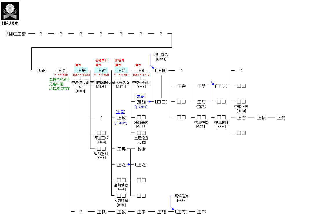 | TB19:楠木正遠 | 橘 諸兄 ― 橘 遠保 ― 楠木成綱 ― 楠木正遠 ― 甲斐庄正繁 | TB23:甲斐庄正繁 | ● |