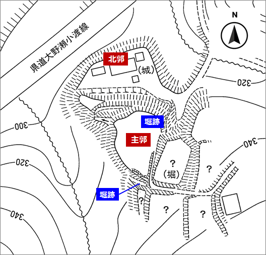 川手古城縄張り図(『愛知県中世城館跡調査報告』に加筆)