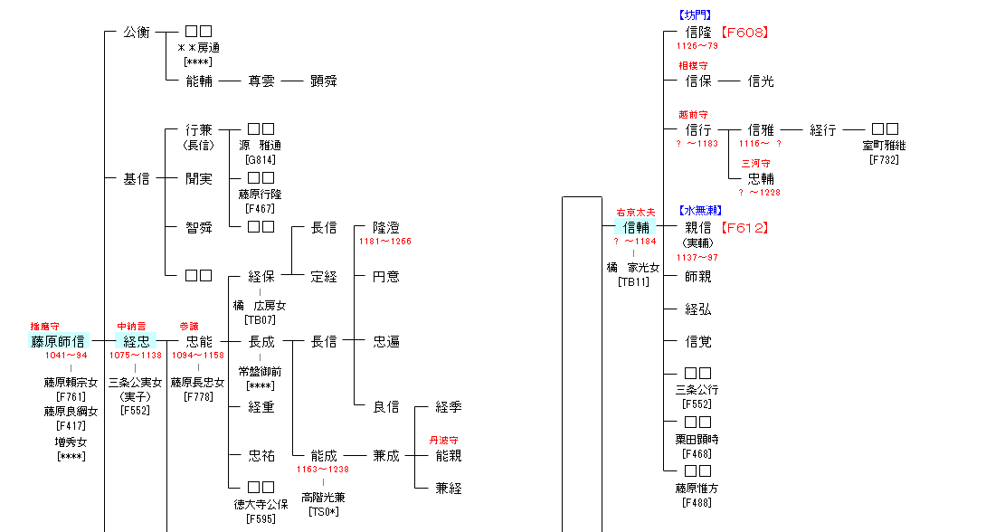 寛治2年(1088年)、行幸によって勧賞され、正四位下に叙される。その後、丹後守を務める。寛治3年(1089年)内蔵頭として賀茂臨時祭の記事に名がある。寛治6年(1092年)公卿議の間、東方に赤雲が有った際、師信が夢想があったと告げている。寛治7年(1093年)殿上人となっており、播磨守を兼任。同年2月に郁芳門院院別当に任ぜられる。その後、正四位上に昇り、修理権大夫を務める。寛治8年(1094年)正月10日に飲水病により54歳で卒去。媞子内親王の院別当を務めた際、『執行万事』と評されている。 師信自身は正四位上に留まり公卿に昇っていないが、子の経忠や孫の忠能を始め、多くの公卿が出ている。また、坊門家や羽林家の水無瀬家、さらに支流として七条家,町尻家,桜井家,山井家など、多くの堂上家を輩出した。