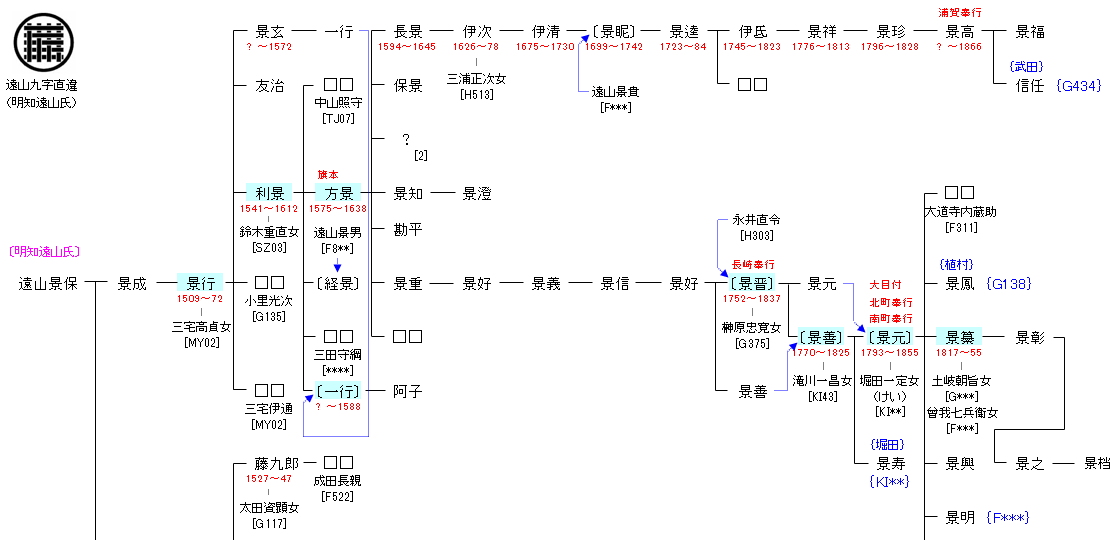江戸時代初期の江戸幕府の旗本(交代寄合)。美濃国恵那郡の明知城に生まれる。元亀元年(1570年)12月28日の上村合戦で武田軍の秋山虎繁に敗れた祖父の景行は自刃し、叔父の景玄も戦死した。天正2年(1574年)2月7日に武田勝頼の家臣・山県昌景の侵攻の際に、もう一人の叔父の遠山友治も討死にし、明知城は落城した。 本来の明知遠山氏の後継者である叔父の景玄の遺児で嫡流の遠山一行(与助)は未だ幼少であったために、家臣一同が相談して父を還俗させて明知遠山氏を継がせた。遠山利景と名乗り、通称を勘右衛門と称した。 その後、妻との間に方景が生まれたが、父の利景は、景玄の遺児の遠山一行を養嗣子とし、また上村合戦で武田氏と戦って当主が討死した串原遠山氏の遠山景男の遺児の遠山経景も養子としたため、兄弟ということになった。 天正3年(1575年)5月の長篠の戦いの後、織田信忠は、武田方が籠る岩村城を攻囲したが、その戦いにおいて父の利景は小里城を落とし、明知城を奪還した。天正10年(1582年)の甲州征伐の際には、父の利景は徳川家康の麾下に属して、方景と一行を伴って参加。そのまま河尻秀隆らと甲府の守りついたが、本能寺の変を知って帰還した。河尻秀隆の甲府入りの際には利景,一行,方景が従っており、その後は共に甲府の守備に就いていることから、利景らは秀隆の与力にあたると推測される。この時、父の利景は駿河国に赴き、江尻城にいた本多重次を訪ねて、今後は一族は徳川方に従うことを誓ったが、直後に羽柴秀吉より美濃金山城主・森長可に従い人質を出すように命ずる書状が届いたため、一行の娘を金山城に人質として送った。 しかし、天正11年(1583年)、父の利景と伴に密かに明知城を出て、三河足助城に移ると家康の麾下に入った。これを知った森長可は激怒して人質としていた一行の娘の阿子と老女2人を磔刑にして屍を美濃と三河の境にある野原村の矢作川の河原に三河側から見えるように晒した。その後、明知城は森長可の手に落ちた。 天正12年(1584年)、小牧・長久手の戦いが始まると、明知城は森長可の家臣の石黒藤蔵,関左門の2人が守っていたが、4月17日、父の利景は策を講じてこれを襲い、城を奪還すると共に首級15を挙げた。そのうち3つを小牧の家康本陣に送り、西尾吉次と本多正信が首実検をし、論功行賞で明知の所領安堵が認められた。さらに加勢を受けて手薄な森長可領を攻撃したが、森長可の家臣・各務元正の守る岩村城への攻撃は失敗し、逆に遠山半左衛門などが討ち取られたため、それ以上の侵攻は頓挫した。他方、真田昌幸を押し込めるための小諸城の守りに派遣された依田康国の配下には一行もいた。 同年11月に秀吉と織田信雄との和睦を機に終戦すると、秀吉の命令で明知城は戦死した森長可の弟の森忠政の所領に加えられることになり、利景と方景は再び追われて足助城の鈴木氏を頼った。 天正13年(1585年)、徳川家康が下条康長(牛千代)に対し、天文年間に下条氏が武田信玄から与えられて領地としていた恵那郡上村を遠山勘左衛門(おそらく正しくは勘右衛門=利景)に引き渡すように書状を送り命じた。天正16年(1588年)の冬、家康の使いとして信濃~甲斐~駿河を行き来していた一行は、信濃と甲斐の国境の平沢峠で大雪に遭い亡くなったため、明知遠山氏の嫡流である景玄系は断絶したが、このことにより方景が明知遠山氏を嗣ぐこととなった。 天正18年(1590年)、北条氏直の小田原征伐に、父の利景は徳川軍の一員として方景と、串原遠山氏から養子の経景とともに従軍した。この戦は方景にとって初陣であった。後北条氏が滅亡し家康が関東に転封されると、父の利景は上総国で知行地を賜った。また江戸の下谷に2,700坪の屋敷を賜った。 慶長5年(1600年)の関ヶ原の戦いでは、利景,遠山友政,小里光親らは、西軍についた田丸直昌から領地を取り戻すために徳川方について東軍に参加することとし、木曽路を美濃に向けて進軍した(東濃の戦い)。利景と方景は、8月下旬、小里光親と共に明知城を包囲し、9月2日に田丸氏の守将は明知城を放棄して敗走したため追撃して首級13を挙げ、明知城を奪還した。さらに共同で岩村城の田丸主水を包囲し、妻木頼忠が土岐砦と高山砦を陥した。15日に関ヶ原本戦が決着した後、田丸勢は投降し、友政が岩村城を接収し、夜が明けて諸将が撤収後は利景と家臣が岩村城を守備し、土岐砦は方景が守り、明知城には経景を入れて守せらせた。父の利景は、その功で戦後に旧領回復を成し遂げて江戸幕府成立後の慶長8年(1603年)、美濃国恵那郡と土岐郡において6,530石の知行地を朱印状で認められ交代寄合となり、伏見にて従五位下・民部少輔に任じられ、9月27日に家康が大坂城に入城した際には御奏者奉行を務めた。 ある日、方景は鷹狩の途中で偶然立寄った小庵に祖父の遠山景行の位牌が安置されて密かに供養されていることを知って感激した。慶長15年(1610年)、小庵を改めて寺院を開基することとし、明知遠山氏の菩提寺