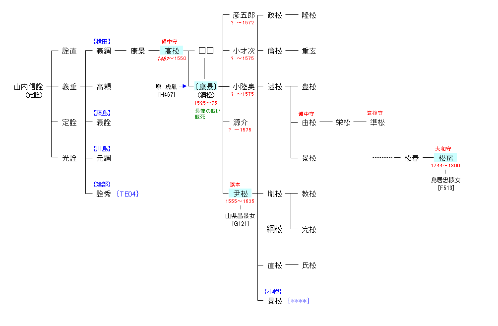 | G751:六角泰綱 | 源 雅信 ― 源 扶義 ― 佐々木定綱 ― 佐々木信綱 ― 六角泰綱 ― 山内信詮 | G754:山内信詮 | ● |