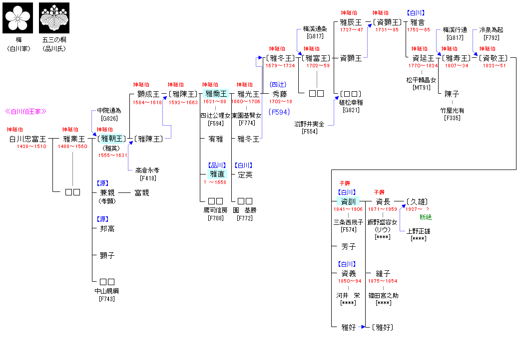 | G902:業資王 | 冷泉天皇 ―(花山天皇)― 源 延信 ― 業資王 ― 白川忠富王 | G903:白川忠富王 |