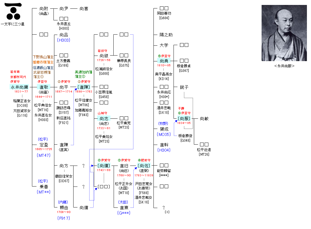 尚庸系永井家初代。山城国淀藩主・永井尚政の3男。母は内藤清成の娘。 |