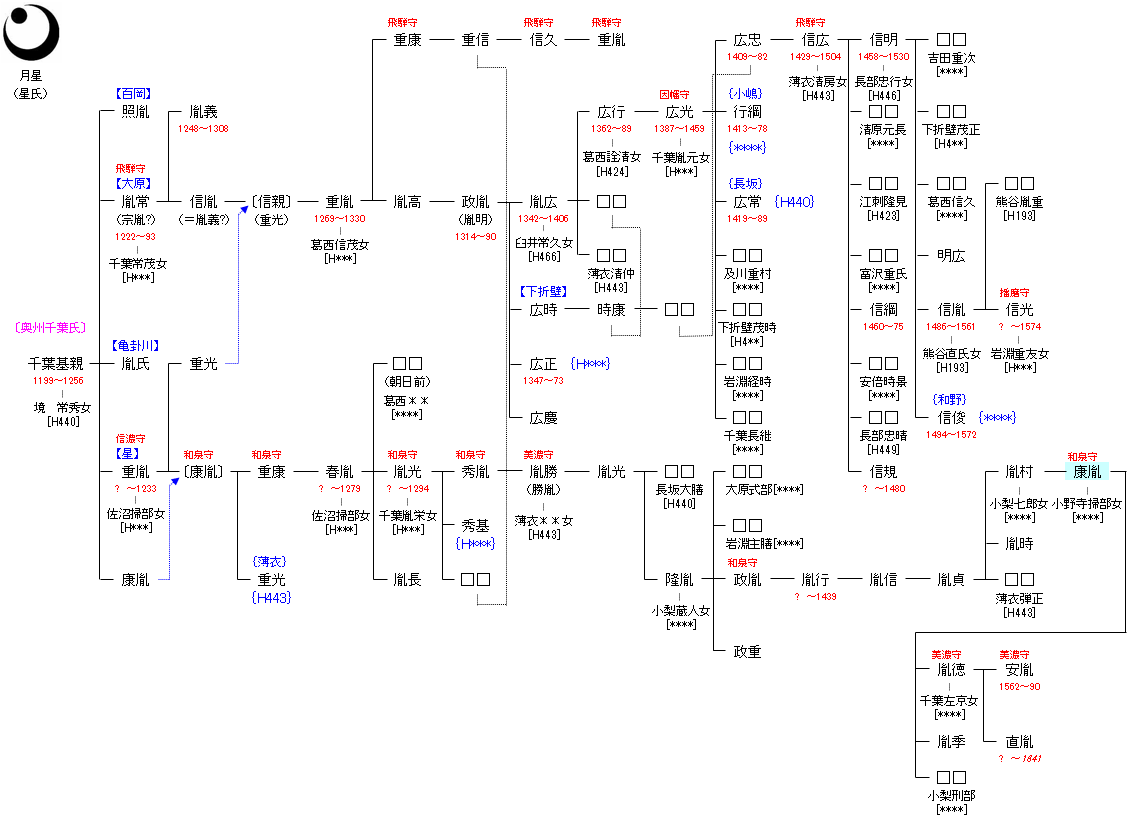 桓武天皇 ― 平 高望 ― 平 忠常 ― 千葉常重 ― 千葉胤政 ― 千葉胤親 ― 千葉基親