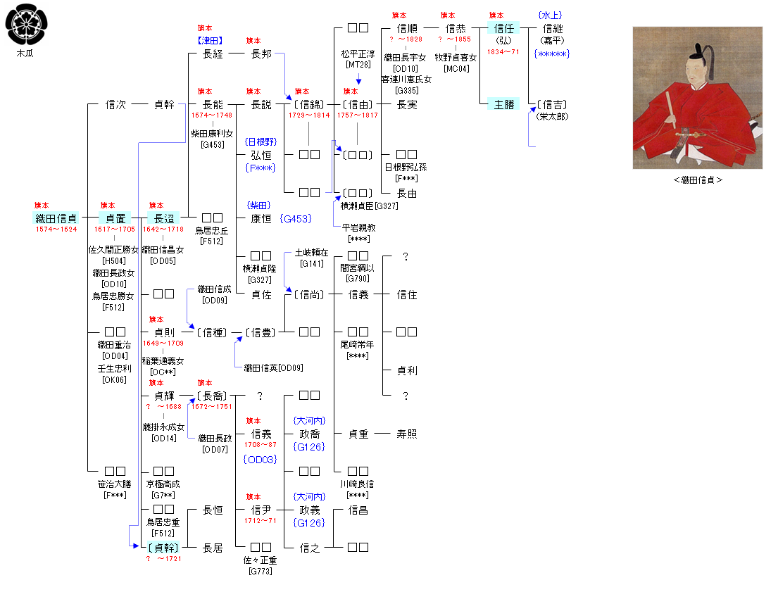 | OD04:織田信長 | 織田親真 ― 織田敏定 ― 織田信秀 ― 織田信長 ― 織田信貞 | OD08:織田信貞 | ● |