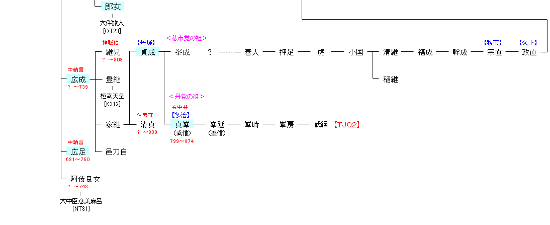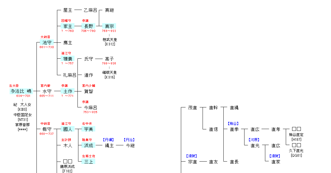 | K301:継体天皇 | 継体天皇 ―(宣化天皇)― 多治比 嶋 | TJ01:多治比 嶋 |
