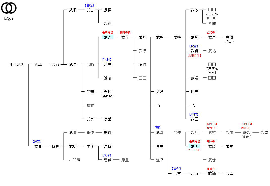 平安時代末期から鎌倉時代初期にかけての武将。厚東氏7代当主。後に剃髪し、念西と号した。長門国厚狭郡郡司。厚東左衛門太夫。源平争乱以前の長門守護職・押領使であったといわれる。 『源平盛衰記』によれば、源平合戦においては平氏に味方し、後に源氏に属したという。寿永3年(1184年)1月(旧暦)の一ノ谷の戦いに際し、諸国から摂津国一ノ谷の陣に馳せ参じた「平家年来伺候人」の中に見える「厚東入道武道」なる人名はこの武光であるとされている。しかし、平氏が衰勢に傾きつつあった文治元年(1185年)以降には、長門・周防の他の多くの諸族に同じく厚東氏も源氏になびいたとされる(壇ノ浦の戦いで長府串崎の船頭衆を斡旋するなど厚東氏は源氏に協力したという)。 子の武景は鎌倉幕府の御家人であったと考えられているが、武光の代で御家人になったかは定かではない。正確な没年は不明である。 後の厚東氏累代の居城・霜降城を本拠である棚井に創築した。