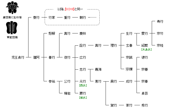 大部豊日 ― 大部船瀬足尼 ― 児玉惟行 ― 児玉貞行