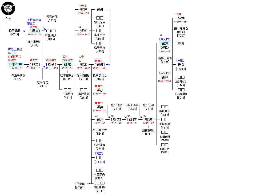 | MT19:松平信綱 | 松平親氏 ― 松平親則 ― 松平正綱 ― 松平信綱 ― 松平信興 | MT20:松平信興 | ● |