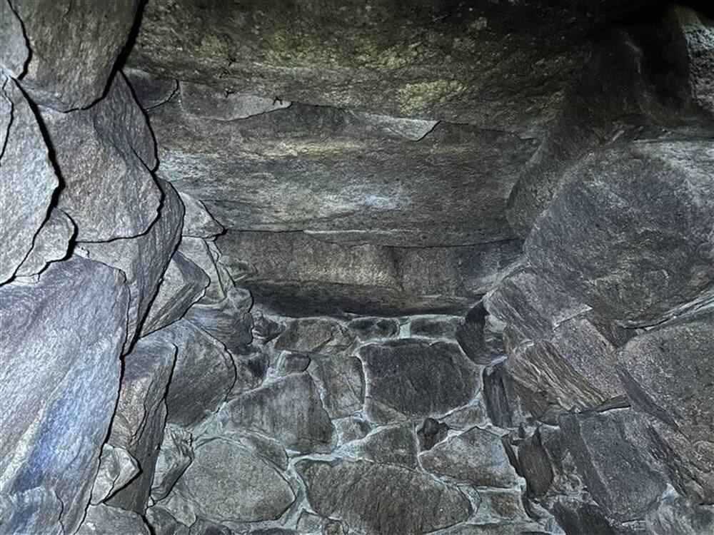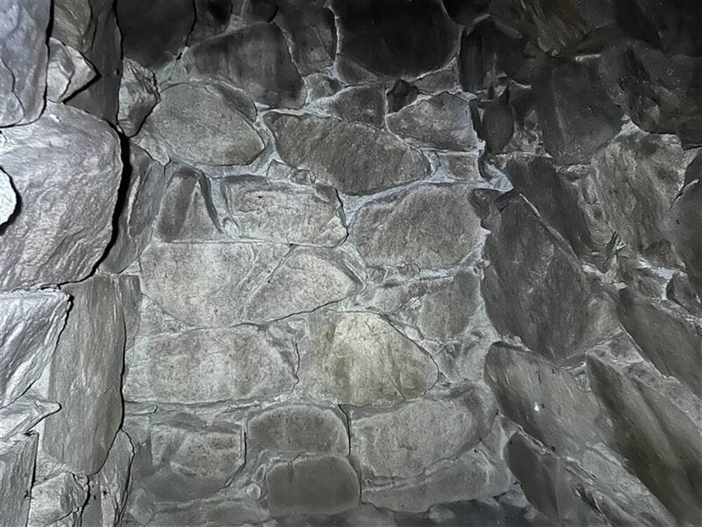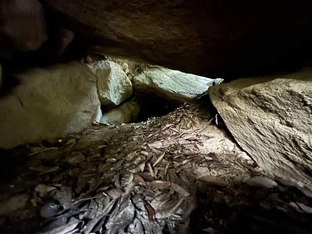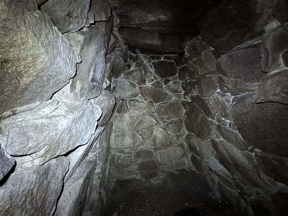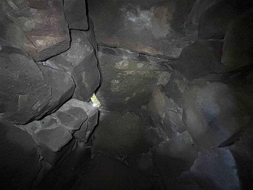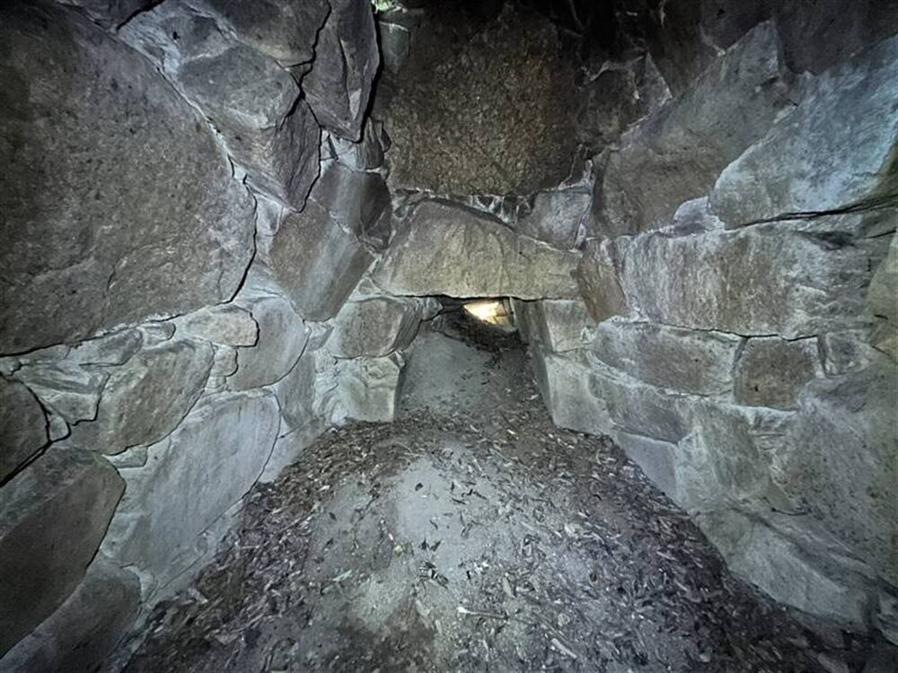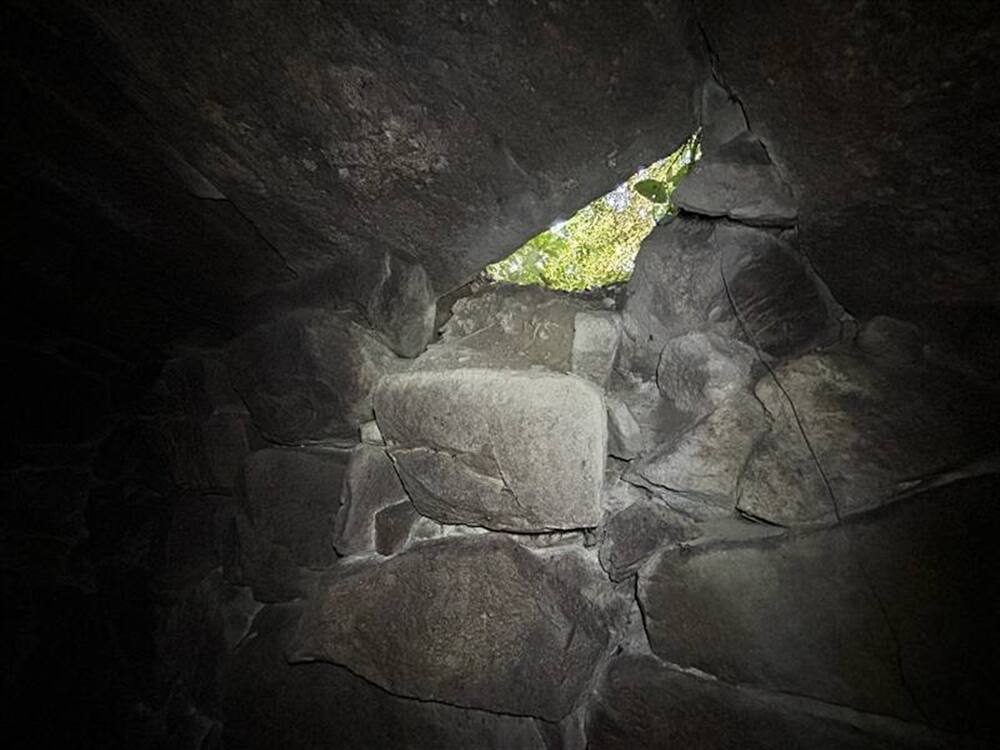 開口部は狭く、匍匐前進して玄室へ入る。玄室はかなり高く外観からが想像できない。天井の一部は崩落しており、玄室内から外部が見えていた。