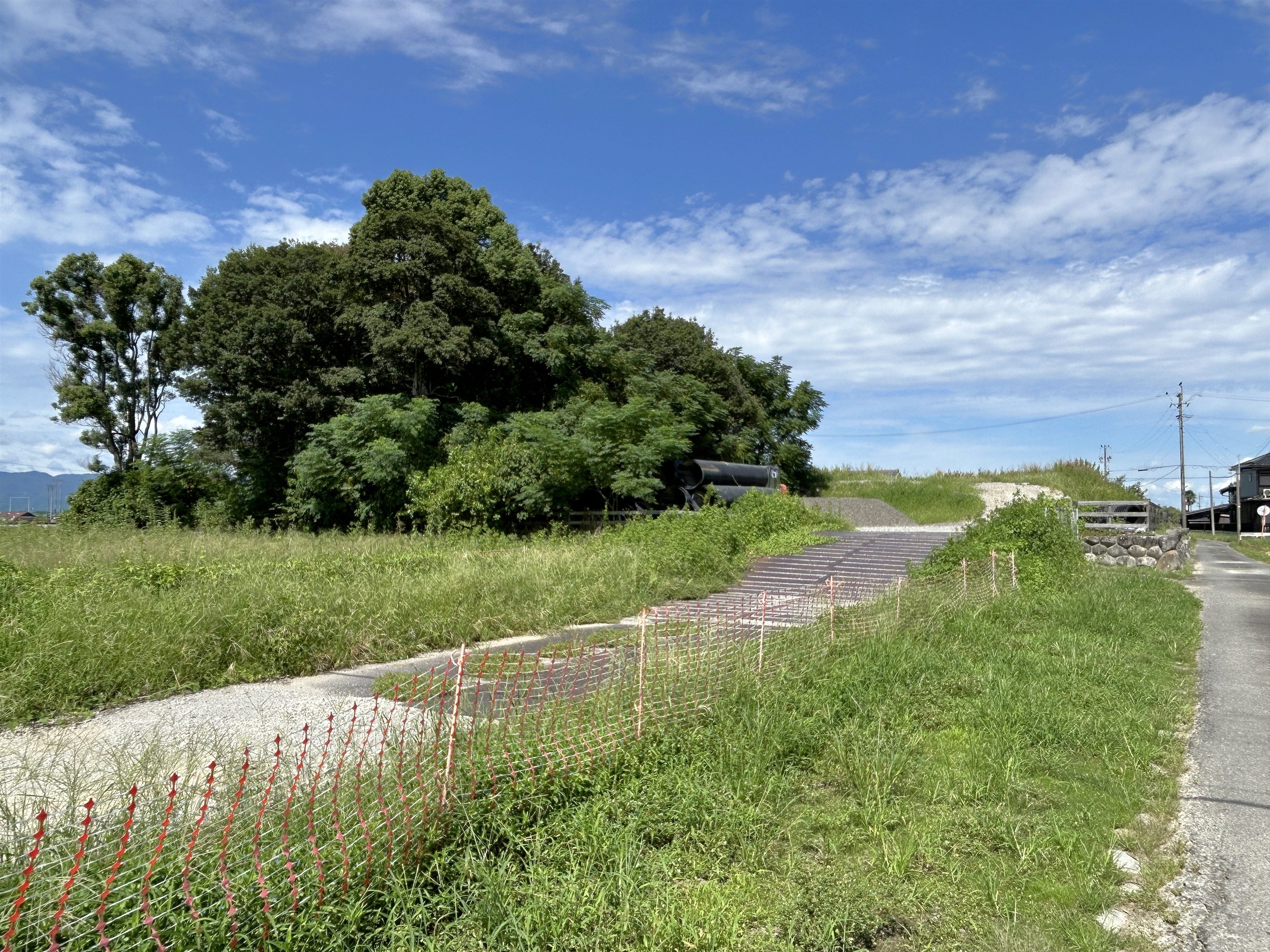 石垣として丸い川原石が積まれているが、当時に積まれたもの(後世の補強は明らかだが)か後世のものかは不明である。