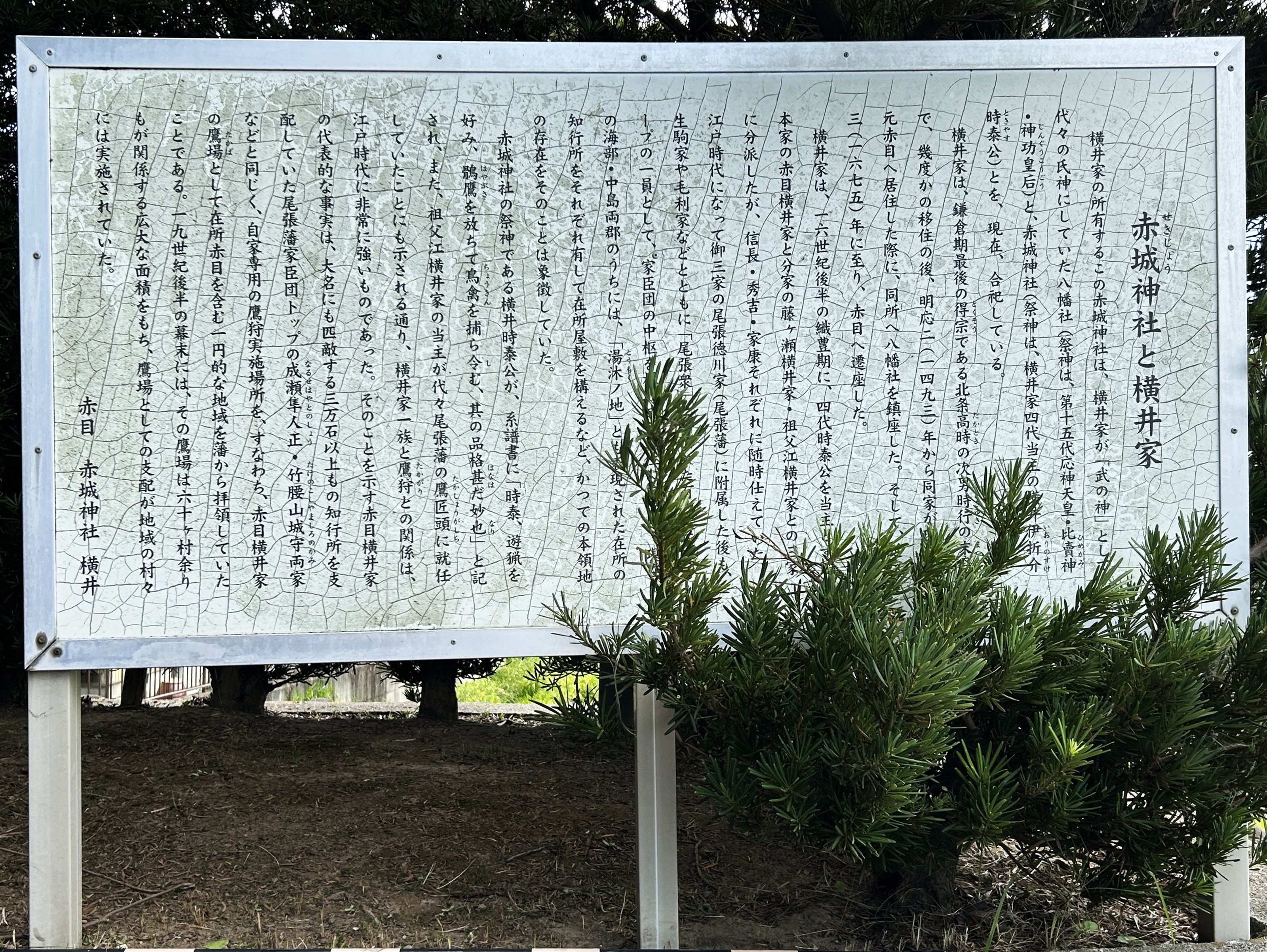 なお、現在も当地には横井氏が住んでおられ、横井邸には城の黒門が移築されている。さらに、城の裏門も北西約300mにある一心禅寺(赤目町中屋敷)に移築されている。
