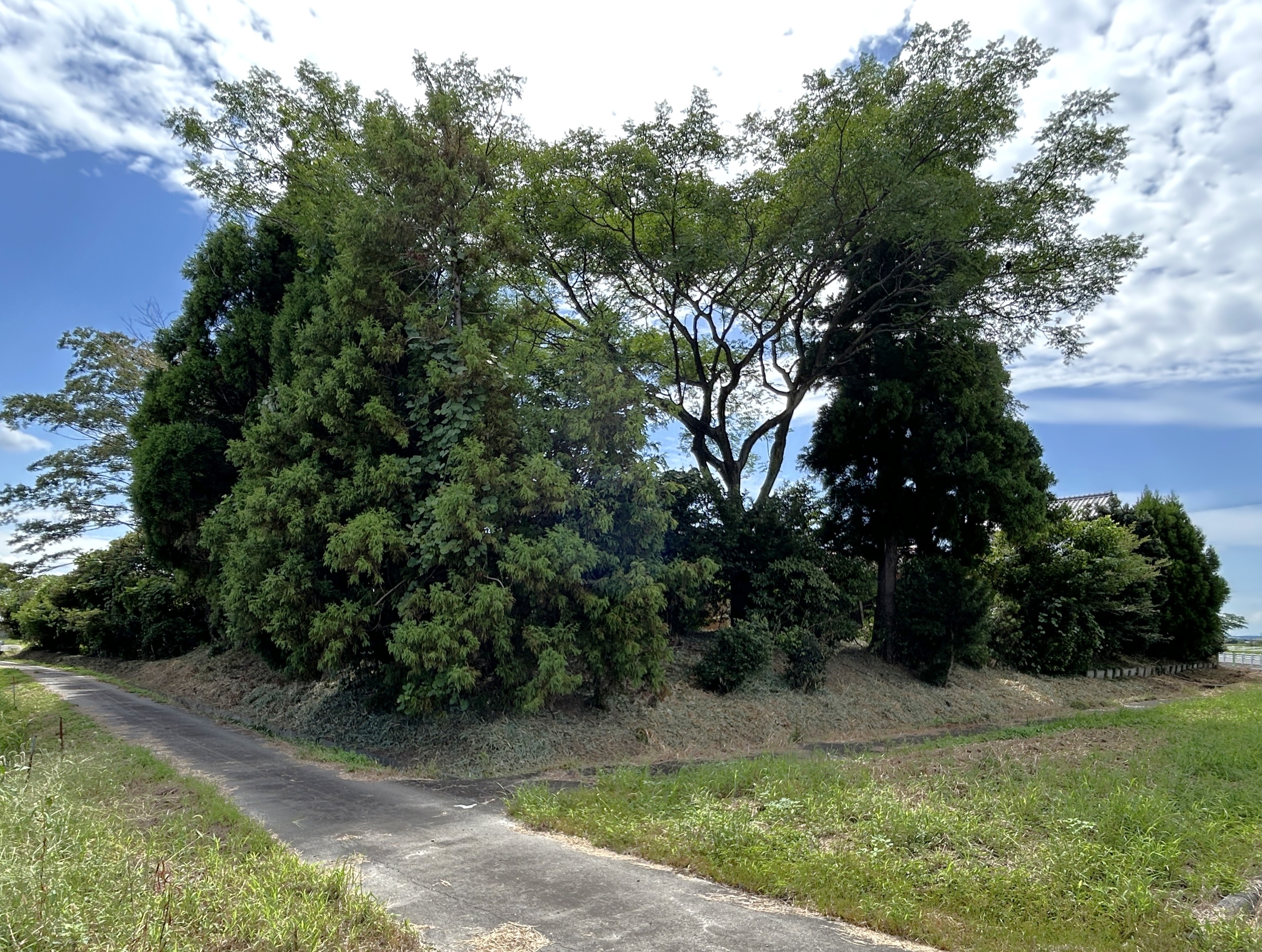 現在は赤城神社がある区域の微高地が城跡とされているが、当初は北北東約700mの定納白山神社(二子町松原)辺りに築城されたとされる。しかし、度重なる洪水で被害を受けていたため、1675(延宝3)年に微高地の現位置に屋敷を構えたという。したがって、周囲に見られる堀跡(水路)も江戸時代に造られたものである。