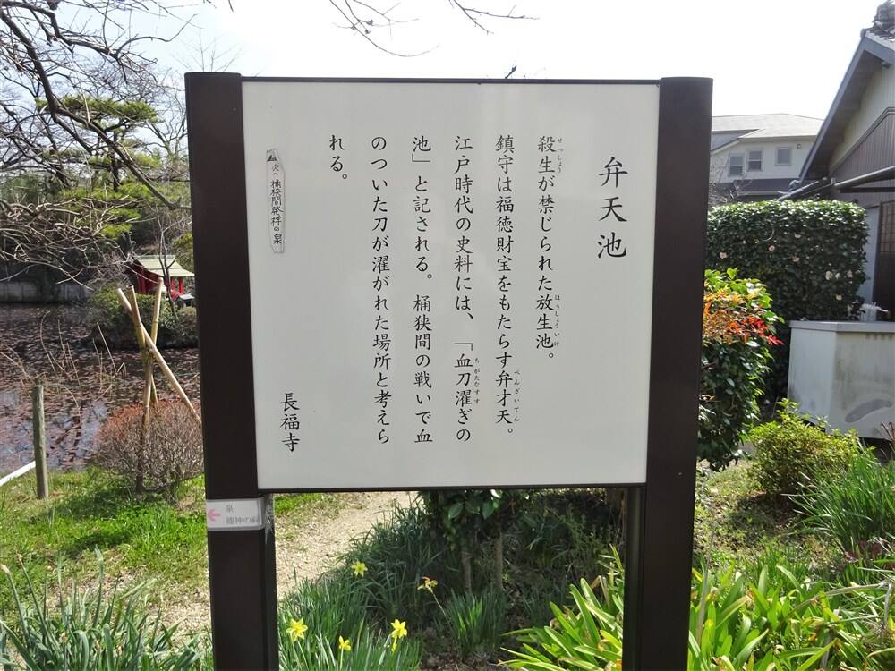 1560(永禄3)年5月19日、桶狭間の戦い後、織田軍が血の付いた刀をこの池で濯いだとされる。長福寺の境内にある。