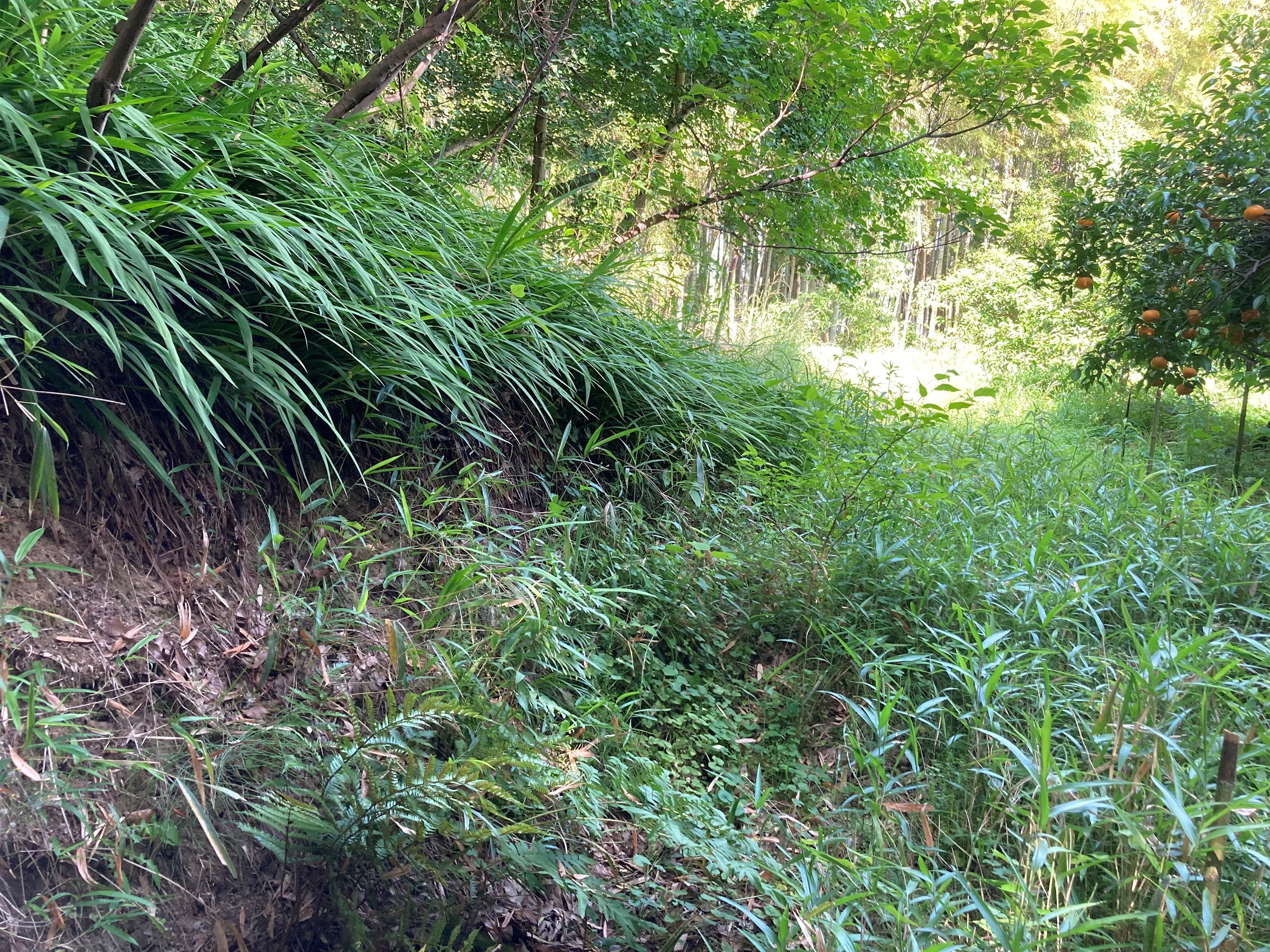 大興寺城は東へ伸びた標高48m,比高20mの丘陵上に築かれていた。現在は竹林,みかん畑,削平地となっており、祠が土壇に残されている。