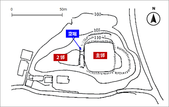 大和雷城縄張り図(『日本城郭大系 第10巻』に加筆)