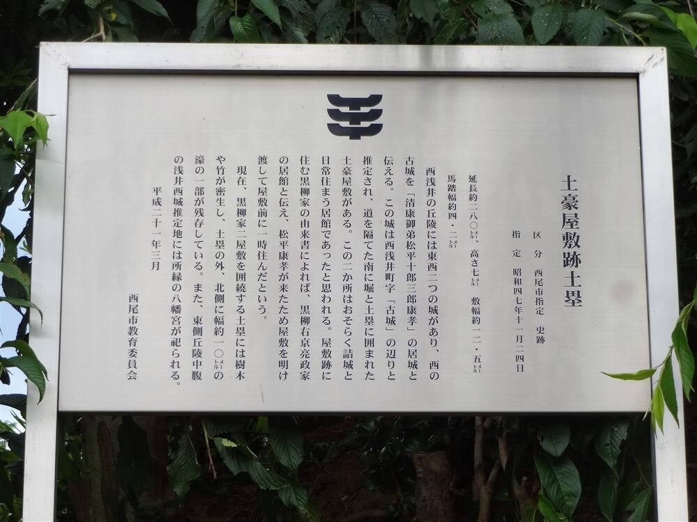 浅井西城は微高地に築かれており、現在、黒柳家の周囲を土塁が巡り、北側には一部濠跡が残っている。