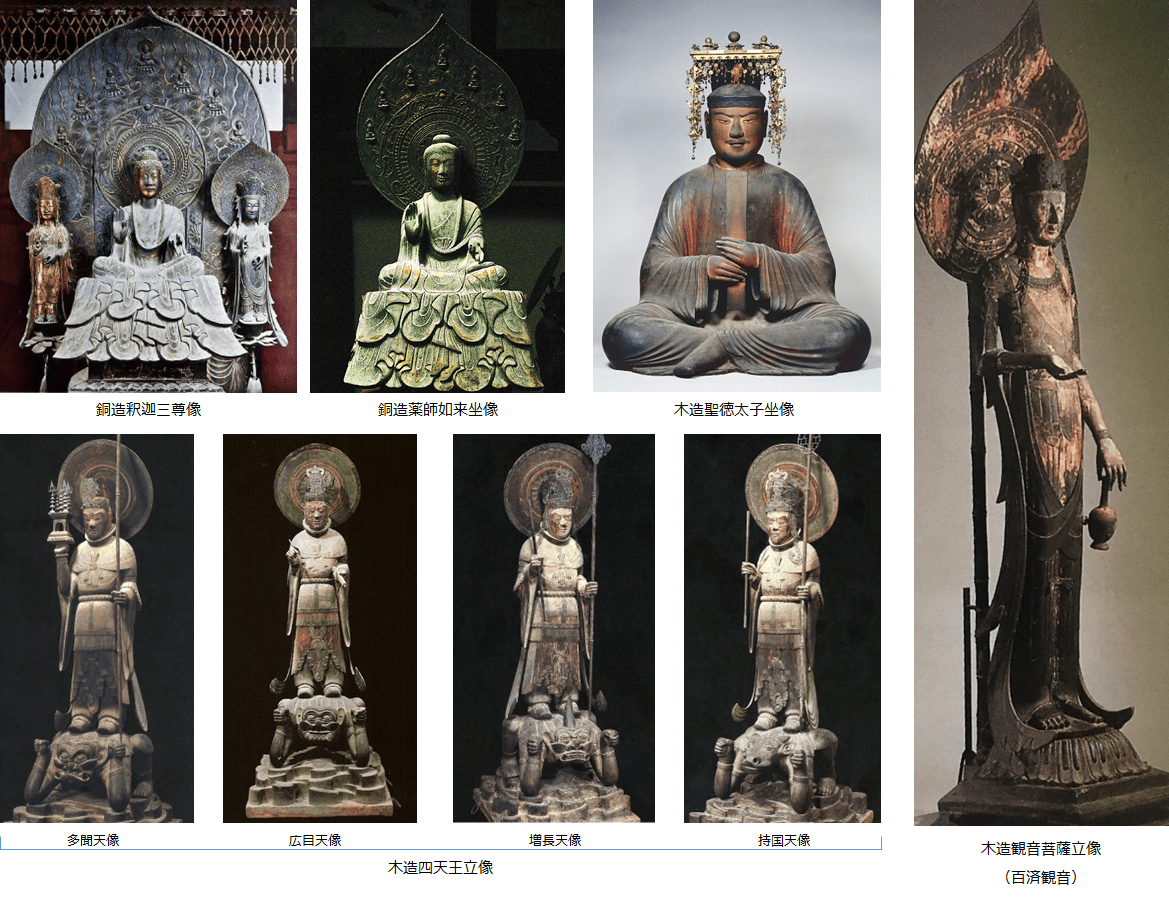 <法隆寺の国宝指定の像(一部)>