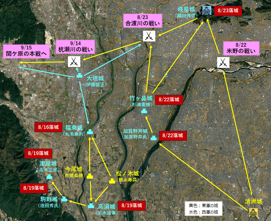 関ケ原決戦前(8/16~9/14)の南美濃における前哨戦