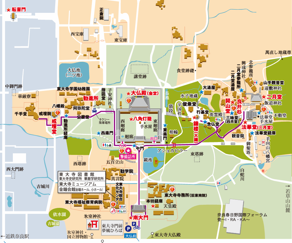 このほか、境内には大仏殿の北に講堂跡、さらに北に正倉院、西には戒壇堂などがある。