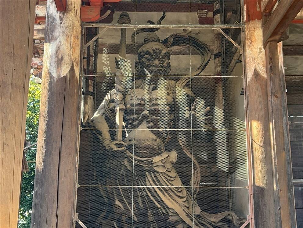 若草山麓にある数少ない奈良時代建築の一つである法華堂(三月堂)は、天平仏の宝庫として知られる。創建当時は羂索堂と呼ばれ、東大寺の前身寺院である金鐘寺の堂として建てられたもので、創建時期は740(天平12)年から748(天平20)年頃と推定されている。建物の北側の正堂には本尊の不空羂索観音立像はじめ、梵天・帝釈天立像,金剛力士・密迹力士立像,四天王立像の計9体の乾漆像と、塑造の執金剛神立像を安置する。乾漆不空羂索観音立像(高さ3.62m)は三眼八臂(額に縦に第3の目があり、8本の腕を持つ)の観音像で、法華堂の本尊として内陣中央の須弥壇上に安置されている。頭上の宝冠は、正面に銀製の阿弥陀如来像を飾り、数多くの宝石や透かし彫りで飾った華麗なもので、奈良時代工芸の優品として知られる。