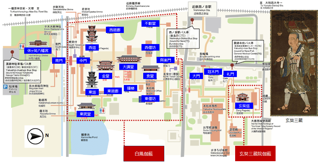 薬師寺伽藍(薬師寺ホームページに加筆)