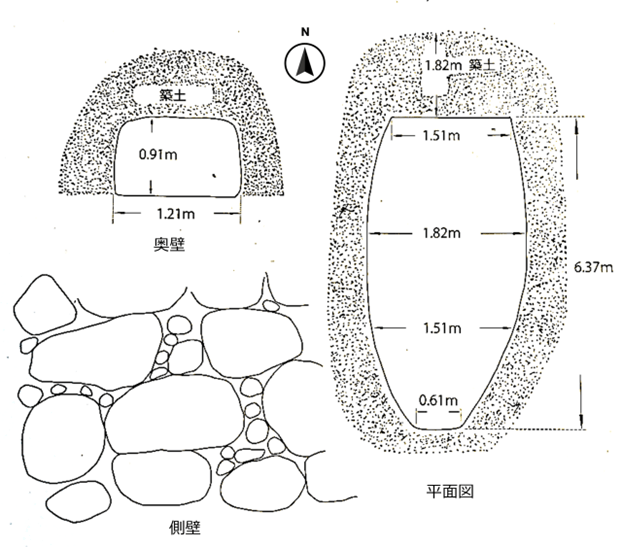 1902(明治35)年、古墳西側の建蘇美命を祀る蘇美天神社の修繕のために石を探しに山に入った際に、石室が発見された。現在は石垣に覆われ、石室を見ることはできない。