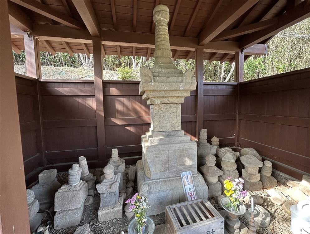 横地城周辺では、このほかにも横地氏一族や家臣らの宝篋印塔や五輪塔が多く見つかっており、北西にある墓地とその東方約100ⅿのところにも祀られている。