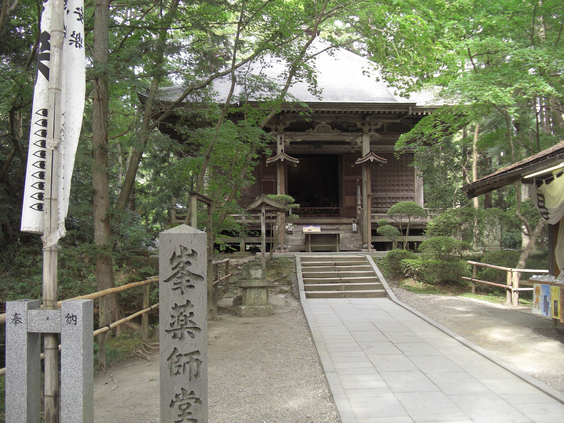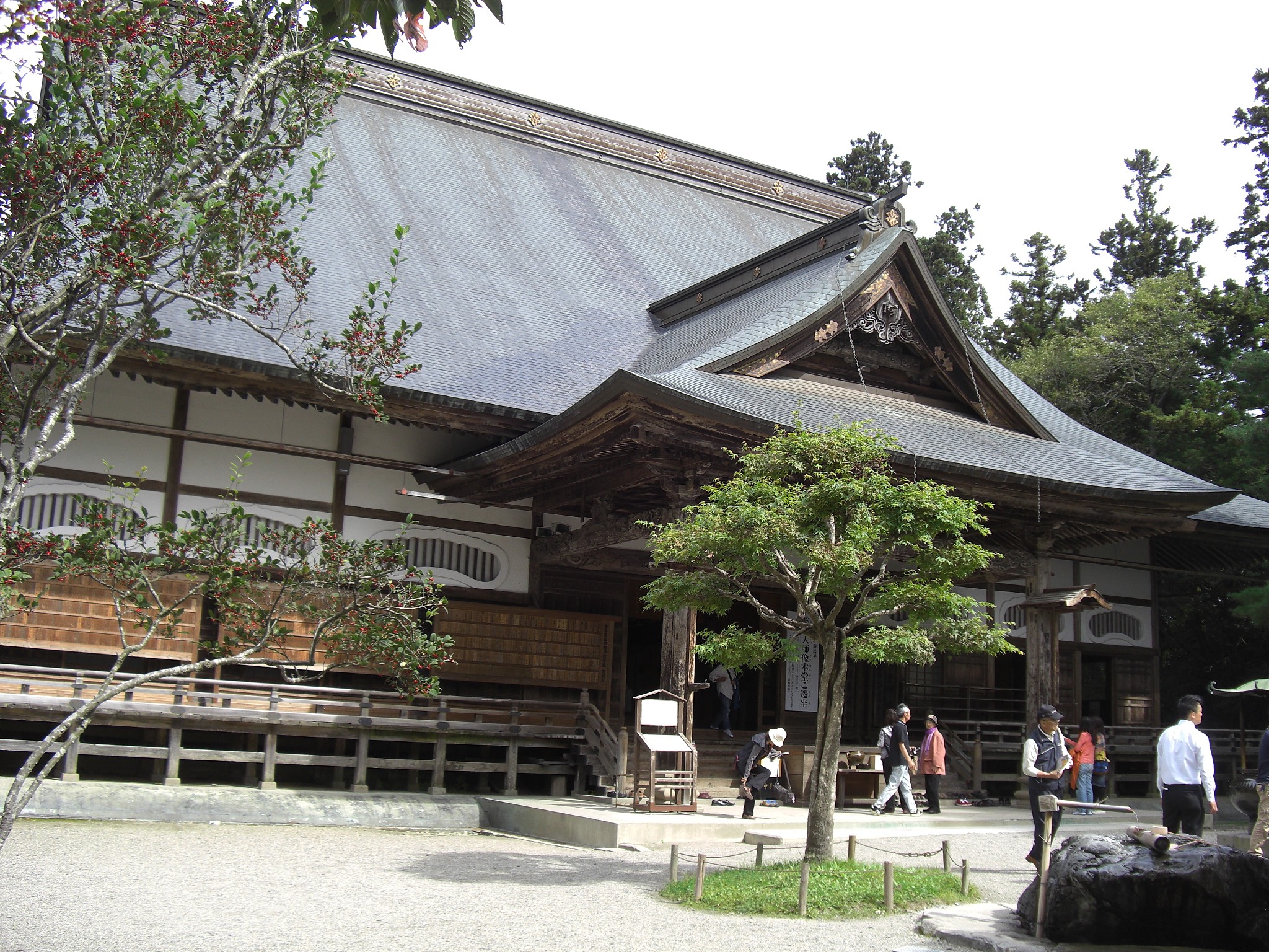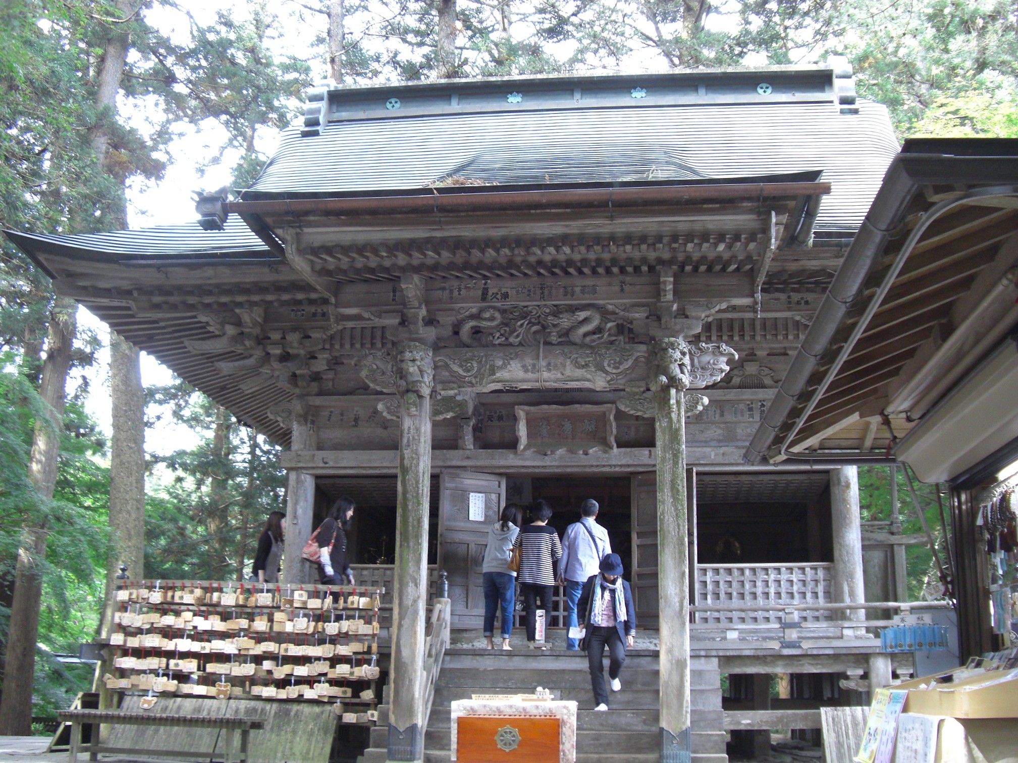 現在の境内伽藍には、本堂,金色堂のほか、八幡堂,弁慶堂,地蔵堂,薬師堂,峯薬師堂,不動堂,大日堂,阿弥陀堂,弁財天堂,経蔵,旧覆堂,釈迦堂などが数多くの堂宇が建ち並ぶ。