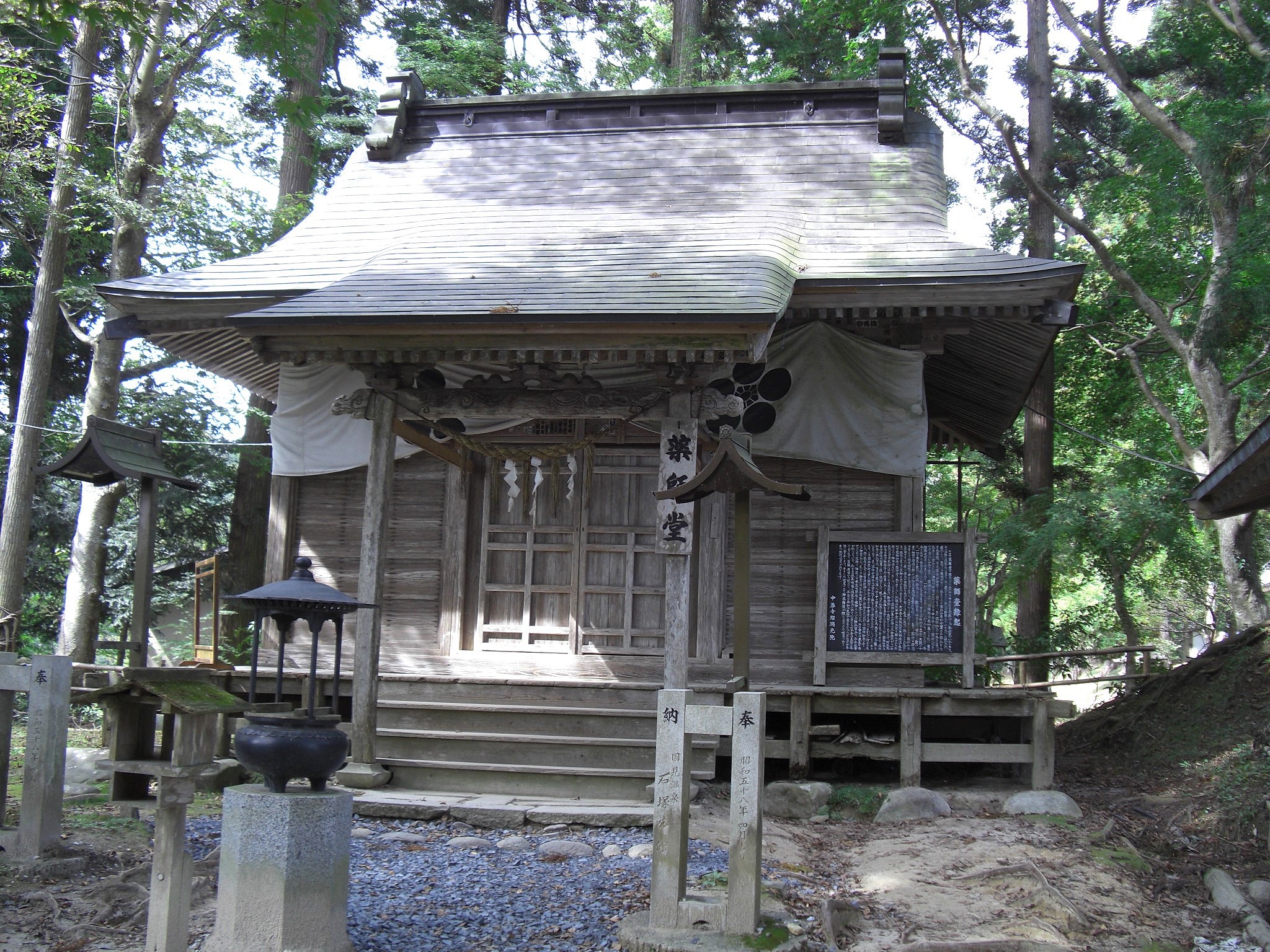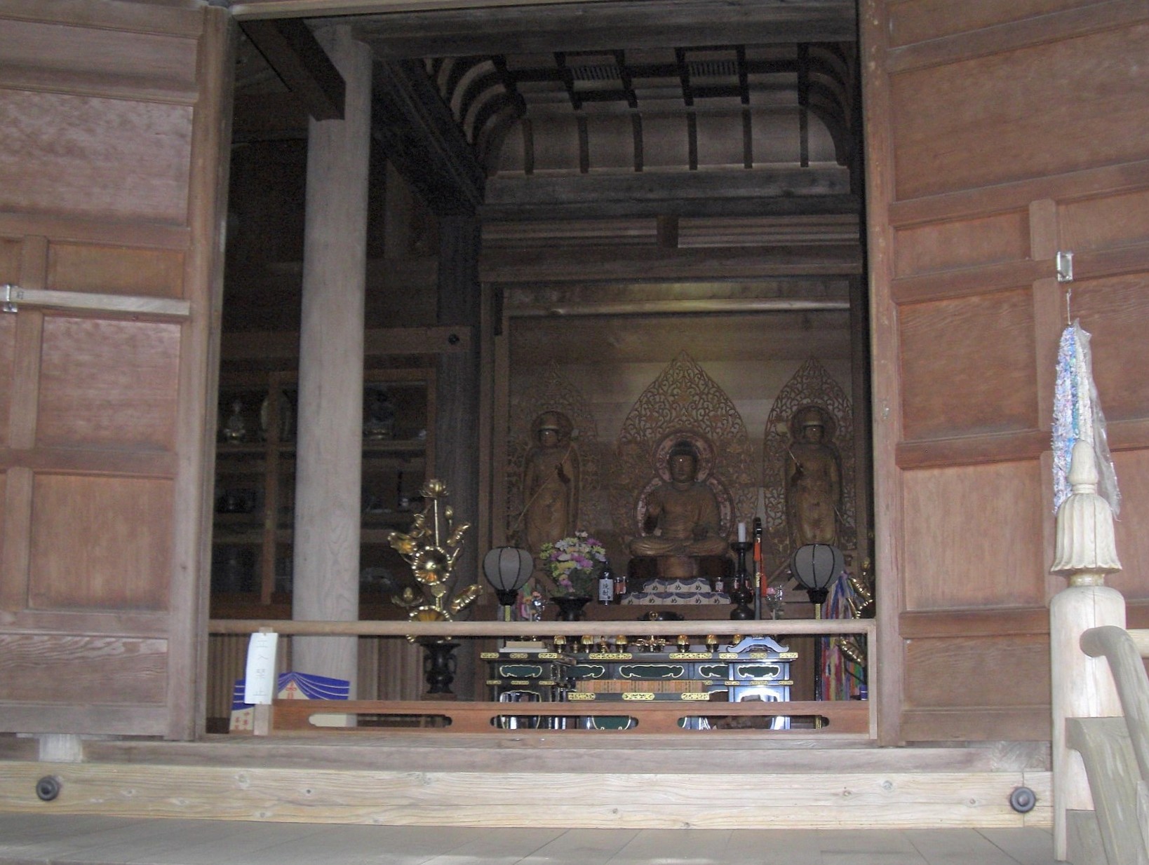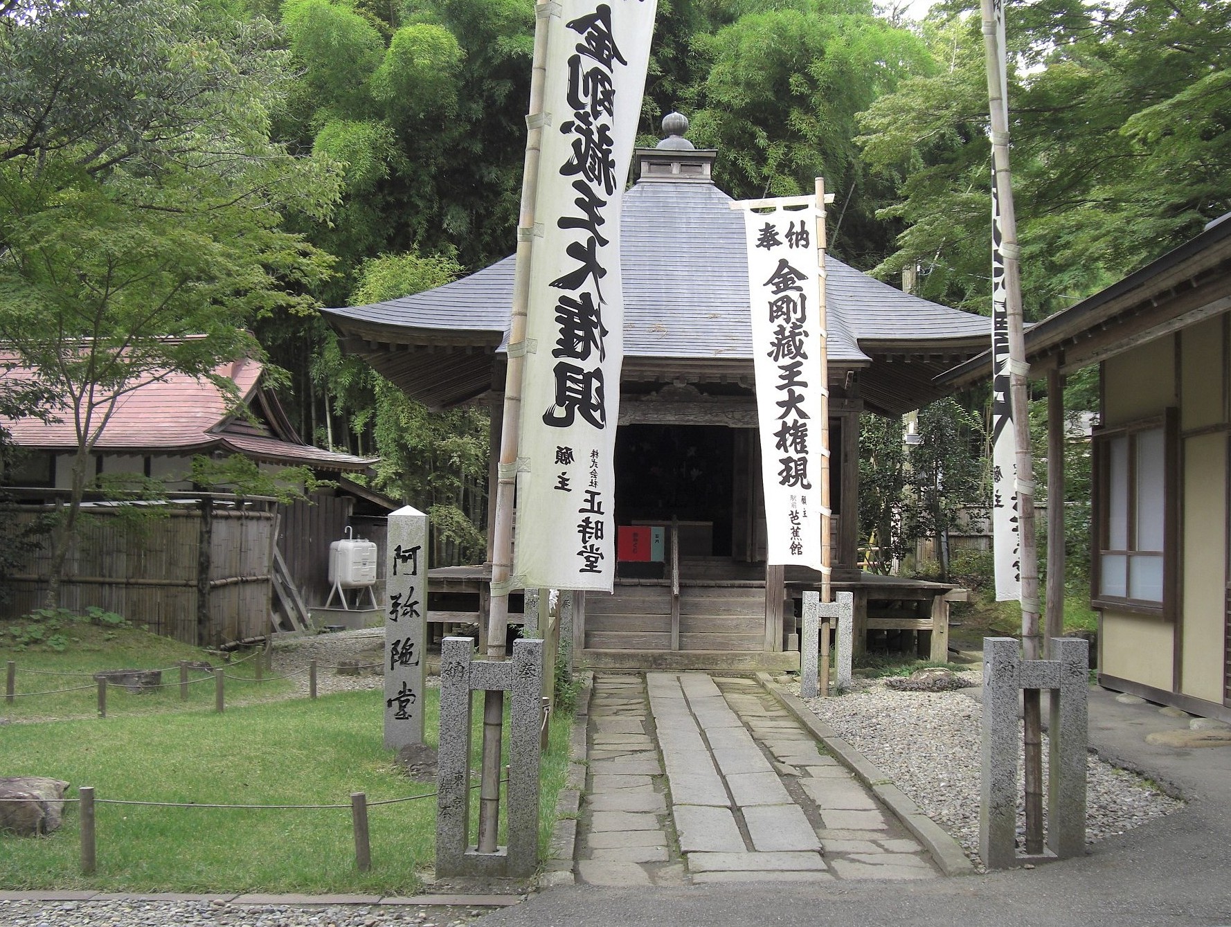 現在の境内伽藍には、本堂,金色堂のほか、八幡堂,弁慶堂,地蔵堂,薬師堂,峯薬師堂,不動堂,大日堂,阿弥陀堂,弁財天堂,経蔵,旧覆堂,釈迦堂などが数多くの堂宇が建ち並ぶ。