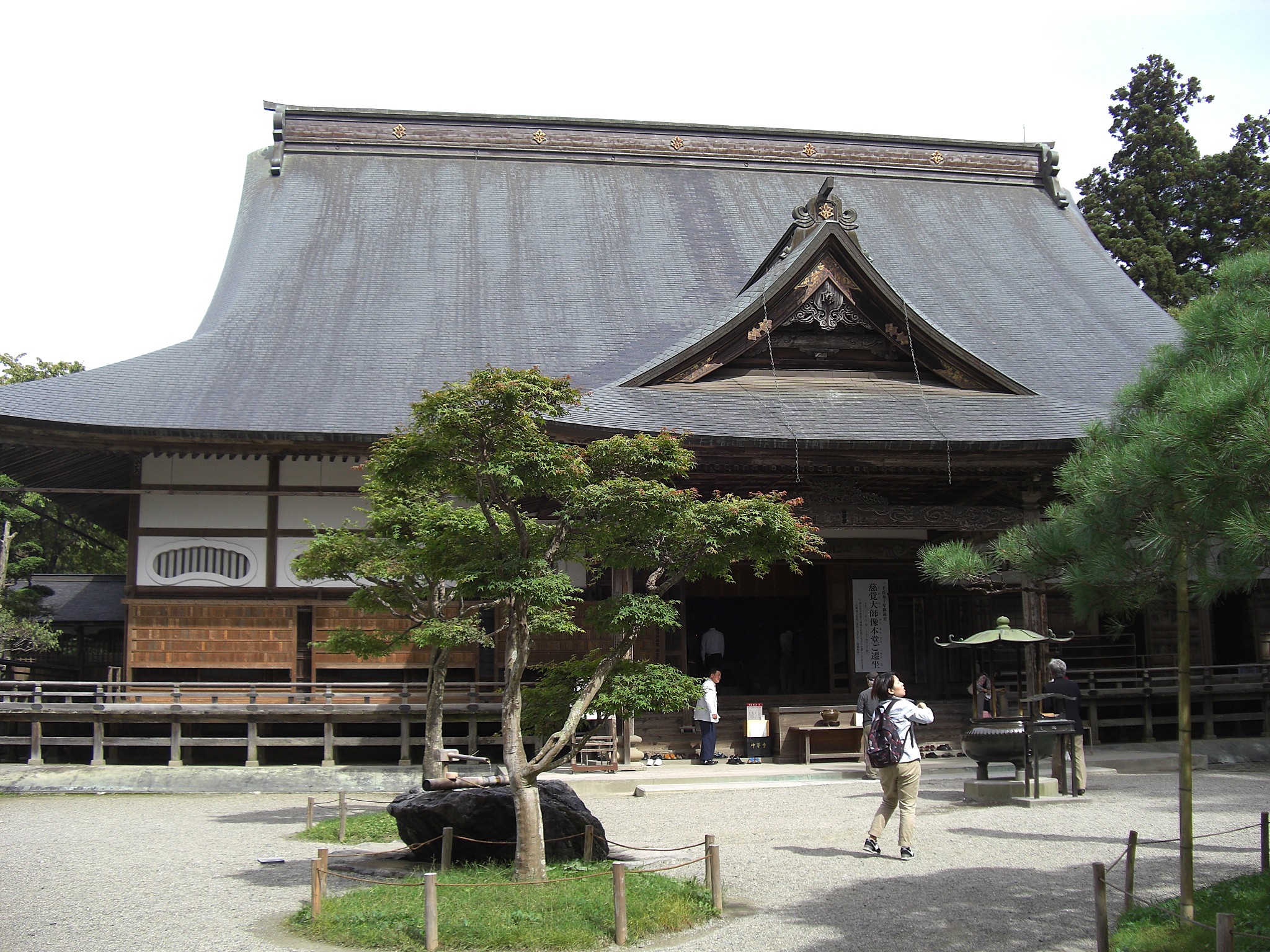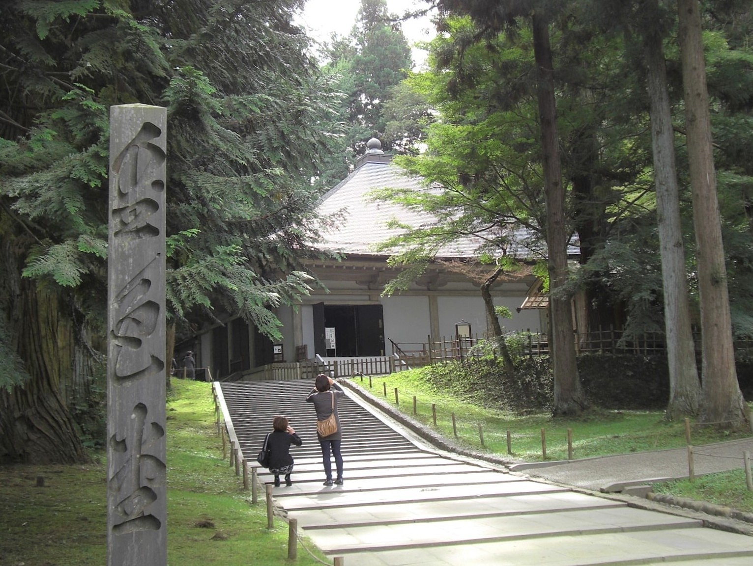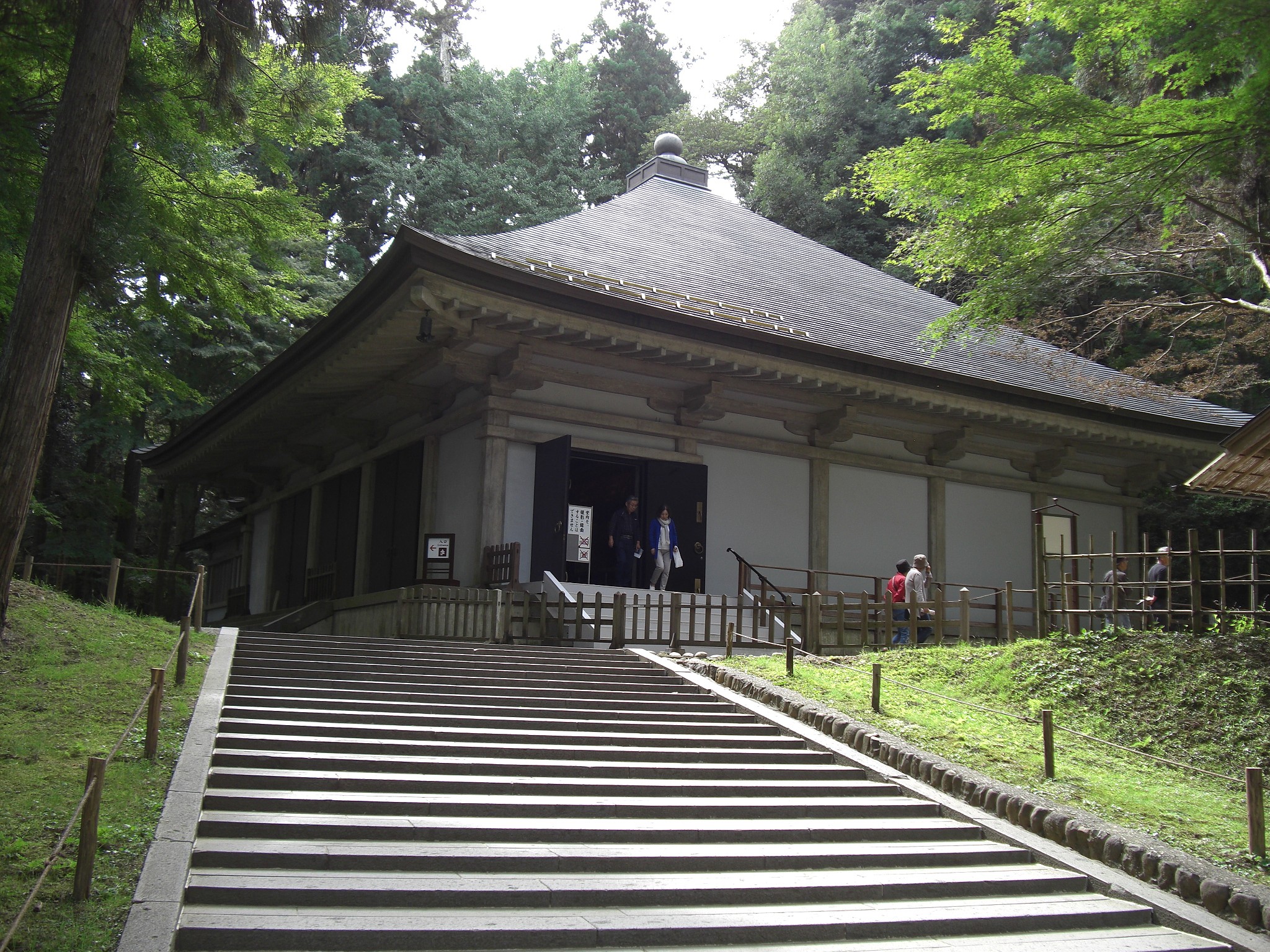 平泉訪問の第1目的地である中尊寺金色堂。TVや写真では見ているが、実物を目の前にすると圧巻の一言。阿弥陀如来をはじめとする仏像の荘厳さは言うに及ばず、螺鈿細工の繊細さからも目を離せなかった。また、ここに825~885年前のご遺体が眠っているというある種の臨場感もあり、観覧者の誰よりも長く堂内に留まっていた。