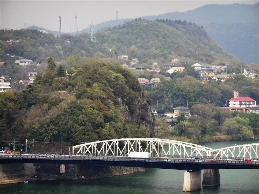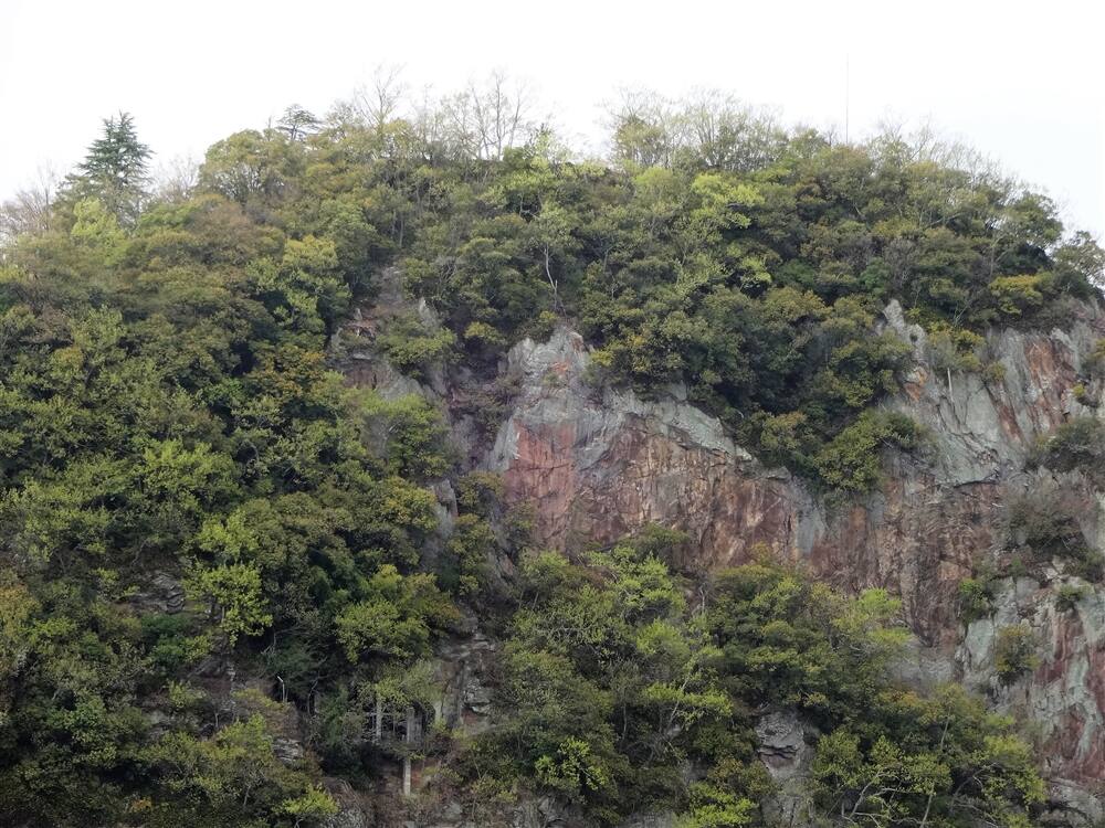 岐阜城を訪れたついでにと登り口を探すも見つからず。近くから、また岐阜城に向かう道を振り向きながら撮影した。確かに切り立った崖が敵を寄せ付けなかっただろうことは想像に難くない。ズームすると山頂には建物跡らしきものが見えるが、廃業した旅館とのことである。